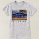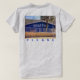 Beba CAFÉ más tarde - En letras blancas gastadas en un fondo azul cobalto pintado en una pared de ladrillo, el cartel en la fotografía original de ZoeSPEAK en esta camiseta para los amantes del café lo dice todo. La pequeña tienda, con una palmera delante y un tejado de paja detrás, está tomando el sol por la tarde. Debajo de la foto del café está la palabra POR FAVOR (¡quiere decir sí, me gustaría un poco de café!).