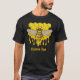 Abeja de miel con alas abiertas icono sobre colmena de abejas y gotas de miel. Texto personalizado.