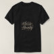 El diseño de la camiseta muestra el texto "Classic Beauty" en un tono atrevido y elegante. Los colores son una mezcla suave de pasteles, creando una sensación de elegancia intemporal. El diseño es sencillo y centrado, lo que permite que el texto sea el punto central del diseño.