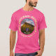 El color es muy bonito al natural, como la foto. El tejido es suave y de buena calidad. Sin defectos en el tintado, ni hilos sueltos o descosidos. Bien la impresión. Los bordes de las letras y el dibujo son nítidos, y el color contrasta muy bien con el de la camiseta.
