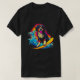 El color es muy bonito al natural, como la foto. El tejido es suave y de buena calidad. Sin defectos en el tintado, ni hilos sueltos o descosidos. Bien la impresión. Los bordes de las letras y el dibujo son nítidos, y el color contrasta muy bien con el de la camiseta.