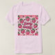 This adorable design features cute cartoon strawberries with smiling faces, arranged playfully. The word "Happy" is displayed in a whimsical font, adding a touch of humor and happiness. The kawaii style and light pink background create a sweet and delightful feel.