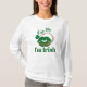 Esta es una camiseta de una mujer de manga larga y divertida para celebrar el Día de San Patricio que presenta labios con un trébol y las palabras "Bésame soy irlandés".