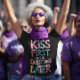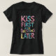 Un ilustracion lúdico y vibrante que representa la frase Besarse primero, hacer preguntas más tarde con letras en negrita y coloridas. La tipografía es lúdica y llena de energía, evocando una sensación de espontaneidad despreocupada.