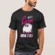 El color es muy bonito al natural, como la foto. El tejido es suave y de buena calidad. Sin defectos en el tintado, ni hilos sueltos o descosidos. Bien la impresión. Los bordes de las letras y el dibujo son nítidos, y el color contrasta muy bien con el de la camiseta.
