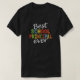 El color es muy bonito al natural, como la foto. El tejido es suave y de buena calidad. Sin defectos en el tintado, ni hilos sueltos o descosidos. Bien la impresión. Los bordes de las letras y el dibujo son nítidos, y el color contrasta muy bien con el de la camiseta.