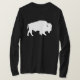 Esbozo de sombra de silueta de un búfalo en esta camiseta de hombres negros. Diseño de camisetas de manga larga para nativos estadounidenses. Este toro de búfalo blanco se ve mejor en una camiseta negra pero espera que la imagen luzca gris plateado antes que blanco brillante. Una gran idea de regalo para él.