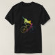 El color es muy bonito al natural, como la foto. El tejido es suave y de buena calidad. Sin defectos en el tintado, ni hilos sueltos o descosidos. Bien la impresión. Los bordes de las letras y el dibujo son nítidos, y el color contrasta muy bien con el de la camiseta.