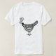 Una camiseta con un inusual motivo de pájaro. Dibujo vectorial original.
