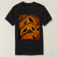 Artwork of dark bird silhouettes with a bright orange background. A striking and atmospheric artwork that evokes the crisp, mysterious beauty of a late autumn evening. Bold black silhouettes of various birds, likely crows and ravens, perch and take flight among the dark, skeletal branches of a barren tree, all set against a fiery, intense twilight sky. Perfect for anyone looking to add a touch of dramatic intensity and nature inspired presence year-round.