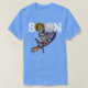 El color es muy bonito al natural, como la foto. El tejido es suave y de buena calidad. Sin defectos en el tintado, ni hilos sueltos o descosidos. Bien la impresión. Los bordes de las letras y el dibujo son nítidos, y el color contrasta muy bien con el de la camiseta.