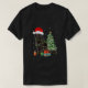 Camiseta Black Cat Santa Angled Up In Christmas Lights Xmas