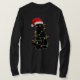 Camiseta Black Cat Tangled Up In Christmas Lights Santa Hat