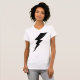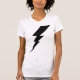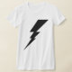 Camiseta femenina de Black Flash Lightning Bolt. Sencillo logotipo de perno negro sobre fondo blanco.