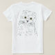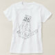 Camiseta blanca de una mujer con una exclusiva impresión Black@White Cat Rest. Presenta un retrato estilizado de la cara de un gato de Fold escocés.