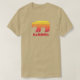 El color es muy bonito al natural, como la foto. El tejido es suave y de buena calidad. Sin defectos en el tintado, ni hilos sueltos o descosidos. Bien la impresión. Los bordes de las letras y el dibujo son nítidos, y el color contrasta muy bien con el de la camiseta.