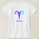 Camiseta del aries con la muestra magenta azul púrpura del zodiaco del aries en la camiseta de la comodidad de las señoras de Hanes; otros estilos de la camisa tales como camisetas sin mangas y jersey están también disponibles; en los estilos de los hombres y de los niños también. Bendiciones felices del punto com bien que desea feliz.