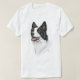 Un border collie blanco y negro alerta headstudy en la camisa de su opción.