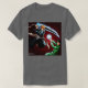 El color es muy bonito al natural, como la foto. El tejido es suave y de buena calidad. Sin defectos en el tintado, ni hilos sueltos o descosidos. Bien la impresión. Los bordes de las letras y el dibujo son nítidos, y el color contrasta muy bien con el de la camiseta.