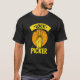 El color es muy bonito al natural, como la foto. El tejido es suave y de buena calidad. Sin defectos en el tintado, ni hilos sueltos o descosidos. Bien la impresión. Los bordes de las letras y el dibujo son nítidos, y el color contrasta muy bien con el de la camiseta.