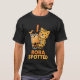 El color es muy bonito al natural, como la foto. El tejido es suave y de buena calidad. Sin defectos en el tintado, ni hilos sueltos o descosidos. Bien la impresión. Los bordes de las letras y el dibujo son nítidos, y el color contrasta muy bien con el de la camiseta.