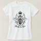 Esta bonita y simple y elegante camiseta de bodas dice "Novia a Bee" y muestra una silueta de abejas rodeada por una corona, una corona de lis y una corona de laurel. También puede modificar el texto "Novia a Bee" para una ocasión diferente o personalizar más para añadir más texto. Para ver este diseño en blanco para camisetas de color oscuro, visita aquí: https://www.zazzle.com/bride_to_bee_honeybee_crown_wedding_personalized_t_shirt-235745448229502460