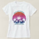Camisetas de playa frescas para que las lleven las damas de honor en una despedida de soltera para una boda en un destino de isla. Cuenta con hermosas palmeras frente a una bonita puesta de sol rosa en la playa. Camisetas personalizadas tropicales perfectas para tu viaje de verano al mar.