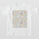 La camiseta de este niño tiene un diseño Boho de círculos superpuestos en tonos retro de verde, marrón, azul y gris.