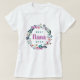 Personalizado imprimió los equipos personalizados con su texto o fotos. Este diseño femenino de bonito Día de la Madre está personalizado con la cita "Mejor Nana de la Historia" o añade tu propio texto en una corona floral de color bonito boho en tonos morados, azules y verdes. Utilice las herramientas de diseño para agregar fotos, cambiar el estilo de la camisa y editar los tipos de letra y los colores del texto para crear uno único de los bonitos regalos del Día de la Madre para mamá y abuela.