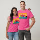 El color es muy bonito al natural, como la foto. El tejido es suave y de buena calidad. Sin defectos en el tintado, ni hilos sueltos o descosidos. Bien la impresión. Los bordes de las letras y el dibujo son nítidos, y el color contrasta muy bien con el de la camiseta.