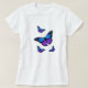 Camiseta de mariposas azul bonito y negro. Hermoso ilustracion de mariposas azules, púrpura y negra en una camiseta. ¡Un gran regalo para los amantes de las mariposas!