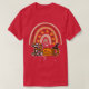 El color es muy bonito al natural, como la foto. El tejido es suave y de buena calidad. Sin defectos en el tintado, ni hilos sueltos o descosidos. Bien la impresión. Los bordes de las letras y el dibujo son nítidos, y el color contrasta muy bien con el de la camiseta.