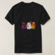 El color es muy bonito al natural, como la foto. El tejido es suave y de buena calidad. Sin defectos en el tintado, ni hilos sueltos o descosidos. Bien la impresión. Los bordes de las letras y el dibujo son nítidos, y el color contrasta muy bien con el de la camiseta.