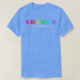 El color es muy bonito al natural, como la foto. El tejido es suave y de buena calidad. Sin defectos en el tintado, ni hilos sueltos o descosidos. Bien la impresión. Los bordes de las letras y el dibujo son nítidos, y el color contrasta muy bien con el de la camiseta.