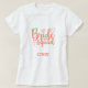 A la novia le encantará esta camiseta cuando se prepare para su gran día. El texto dice Bride Squad, luego un nombre personal debajo si lo deseas. El mismo texto y color se repite en la parte posterior de esta camiseta. El texto, excepto el nombre personal, es una imagen para que el color pueda cambiarse a cualquiera que elija.