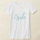 La camiseta de las mujeres se muestra en el cuello de la tripulación y en mangas cortas en blanco con texto de color verde azulado: Novia. Personalizar este artículo o compra tal cual.