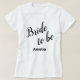 Celebrate the future bride in style with this charming Bride to Be T‑shirt, designed for hen parties, bridal showers, engagement photos, and all the joyful moments leading up to the big day. This design features a clean, modern layout with a dedicated space to personalize the shirt with the bride’s name, making it a thoughtful keepsake she’ll love long after the celebration. Easy to customize and available on a range of shirt styles, it’s the perfect blend of fun, flattering, and beautifully personal.