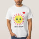 Moderno brillo sol rojo brillante naciente con cara feliz camiseta.