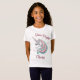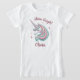 Esta encantadora camiseta personalizada de chicas muestra la cabeza de un lindo unicornio azul pólvora y rosa con la frase "brilla brillante".