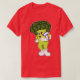 El color es muy bonito al natural, como la foto. El tejido es suave y de buena calidad. Sin defectos en el tintado, ni hilos sueltos o descosidos. Bien la impresión. Los bordes de las letras y el dibujo son nítidos, y el color contrasta muy bien con el de la camiseta.
