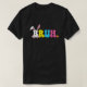 El color es muy bonito al natural, como la foto. El tejido es suave y de buena calidad. Sin defectos en el tintado, ni hilos sueltos o descosidos. Bien la impresión. Los bordes de las letras y el dibujo son nítidos, y el color contrasta muy bien con el de la camiseta.