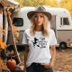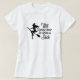 Bruja en una camiseta de Halloween de palo de escoba. © Camisetas y sudaderas en Zazzle. Esta camiseta de Halloween tiene una silueta de una bruja en un palo de escoba con el dicho "Sí, sé cómo conducir un palo"