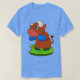 El color es muy bonito al natural, como la foto. El tejido es suave y de buena calidad. Sin defectos en el tintado, ni hilos sueltos o descosidos. Bien la impresión. Los bordes de las letras y el dibujo son nítidos, y el color contrasta muy bien con el de la camiseta.