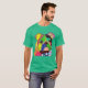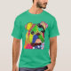 El color es muy bonito al natural, como la foto. El tejido es suave y de buena calidad. Sin defectos en el tintado, ni hilos sueltos o descosidos. Bien la impresión. Los bordes de las letras y el dibujo son nítidos, y el color contrasta muy bien con el de la camiseta.