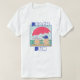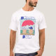 Camisetas maricones, ropa y productos vagos de playa con una extraña ilustración de hombres y mujeres bajo un paraguas de playa cerca del océano en la playa. Camisetas de playa y mercadería.