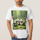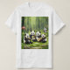 Este diseño de camisetas presenta un fondo claro y ventilado (piensa en el verde bambú o en el amarillo suave) con una escena lúdica de una familia panda disfrutando de una fiesta en un bosque de bambú verde. Tres adorables pandas -un padre, un cachorro encaramado en la espalda del otro padre que se acercaba al bambú y el otro padre- todos se mueven alegremente sobre tallos de bambú, con la opción de una diminuta sesión de bambú que simboliza una nueva vida. El estilo es lúdico y caricaturista, perfecto para los amantes del panda de todas las edades.