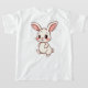 A clean white T-shirt featuring an adorable i-style bunny illustration. The bunny is sitting cutely with big pink ears, soft blush cheeks, and a sweet smiling face. The Bring instant cuteness to your wardrobe with this Cute Bunny T-Shirt, designed to melt hearts at first glance. Featuring an adorable cartoon bunny with soft pastel tones, rosy cheeks, and sweet floppy ears, this design radiates warmth, joy, and playful charm. The bunny’s gentle expression and cozy sitting pose make it perfect for anyon bunny, nursery art style, sof