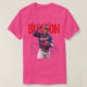 El color es muy bonito al natural, como la foto. El tejido es suave y de buena calidad. Sin defectos en el tintado, ni hilos sueltos o descosidos. Bien la impresión. Los bordes de las letras y el dibujo son nítidos, y el color contrasta muy bien con el de la camiseta.