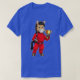 El color es muy bonito al natural, como la foto. El tejido es suave y de buena calidad. Sin defectos en el tintado, ni hilos sueltos o descosidos. Bien la impresión. Los bordes de las letras y el dibujo son nítidos, y el color contrasta muy bien con el de la camiseta.
