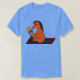 El color es muy bonito al natural, como la foto. El tejido es suave y de buena calidad. Sin defectos en el tintado, ni hilos sueltos o descosidos. Bien la impresión. Los bordes de las letras y el dibujo son nítidos, y el color contrasta muy bien con el de la camiseta.
